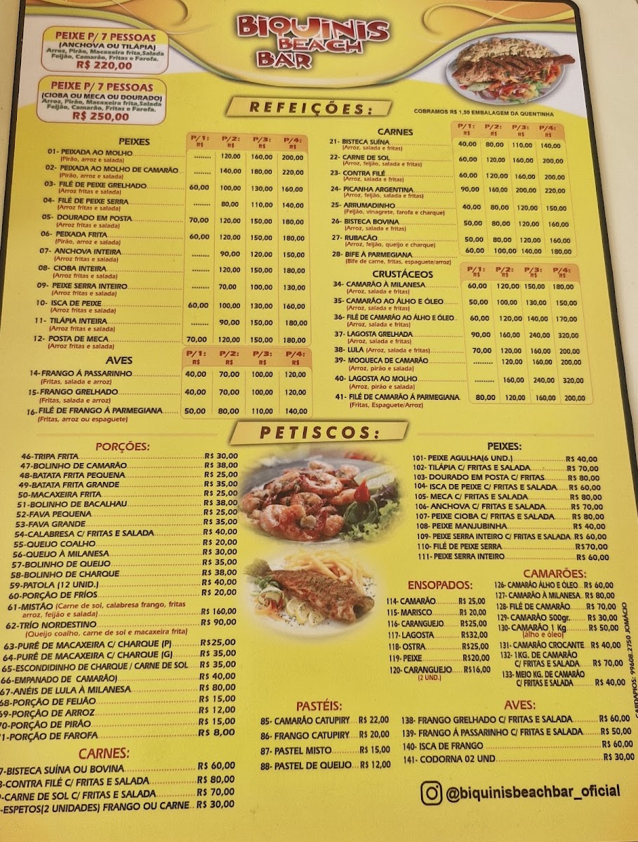 Whether you're in the mood for a light snack or a full seafood feast, Quiosque Biquinis' menu provides a great selection to choose from, making it a perfect place to enjoy flavorful dishes by the beach.