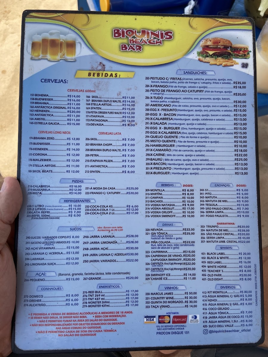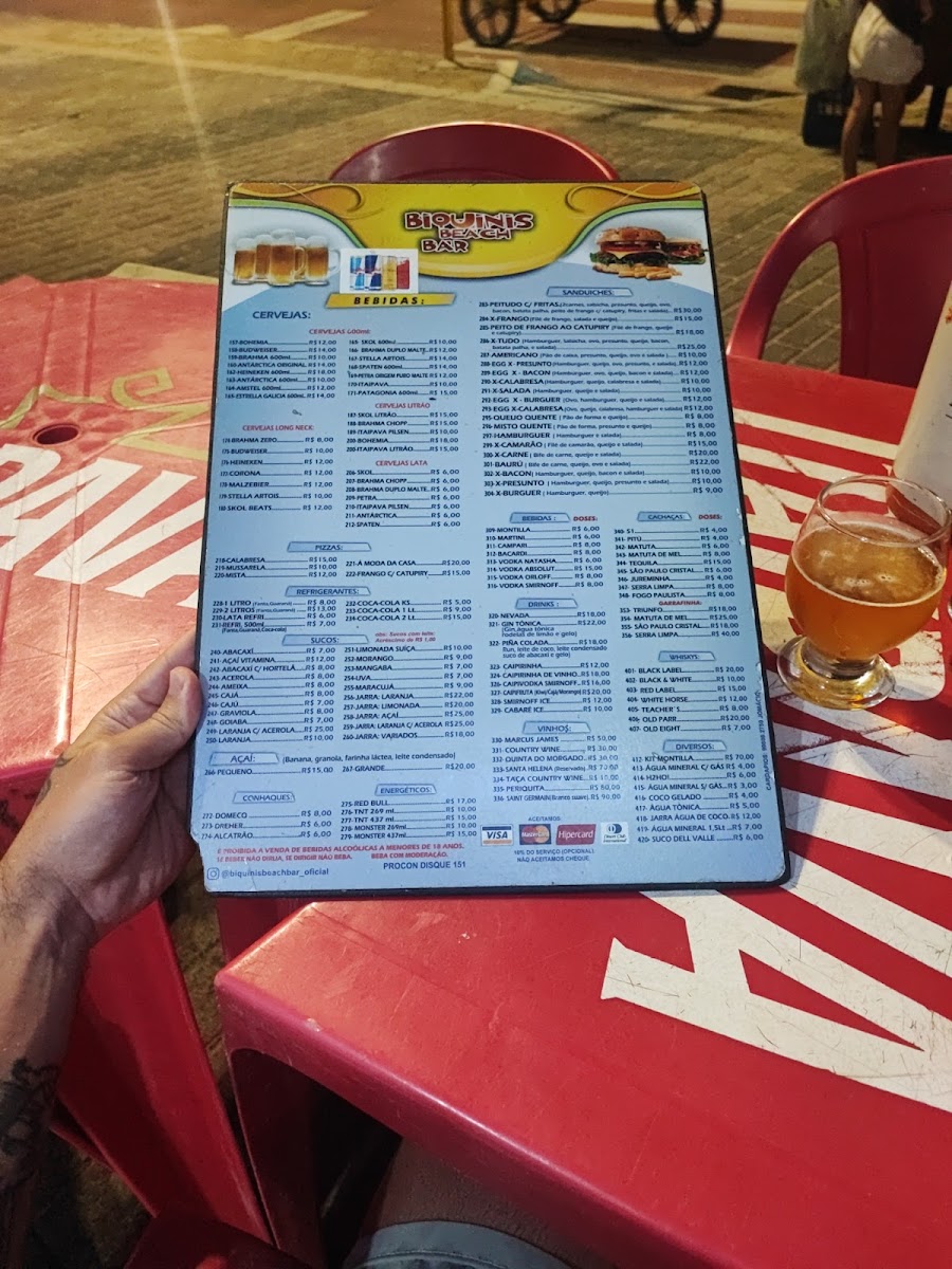 The menu at Quiosque Biquinis offers a variety of delicious options, making it a standout destination for seafood lovers in João Pessoa. One of the most popular choices is the Cerveja (beer), which pairs perfectly with the warm, relaxed atmosphere of the restaurant. For those who prefer something slightly sweeter, the Cider is another excellent option that complements the tropical vibe of the area.